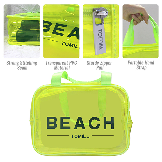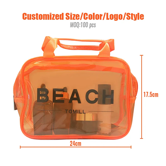 Fashion Women Custom Printed Plastic Transparent Swimming Shopping Waterproof Summer Travel Zip PVC Tote Neon Large Beach Bag