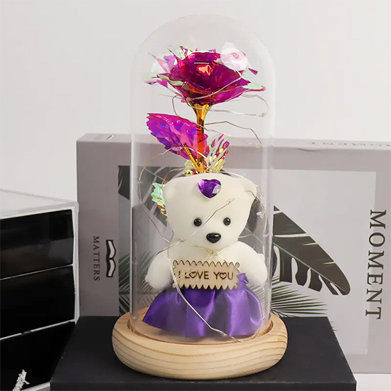 Hot Selling LED Light Glass Dome Galaxy Rose Flowers With One Birthday Gift