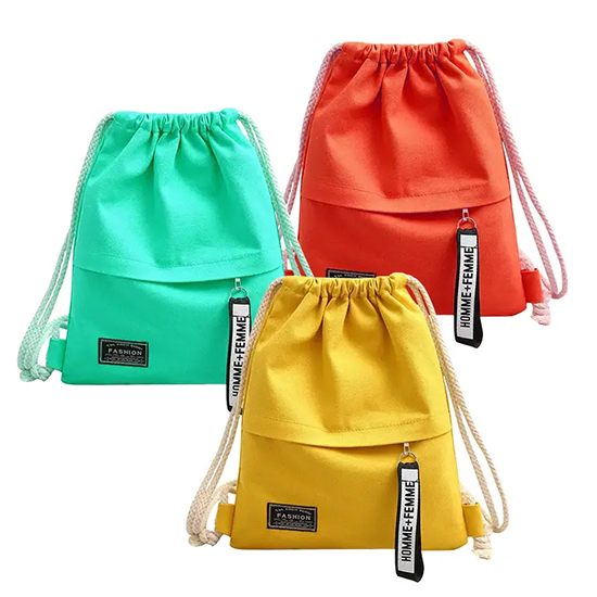 | *PRODUCT NAME | Hot Sale Travel School Custom Logo String Cotton Canvas Drawstring Backpack Bag with Zipper Pocket |