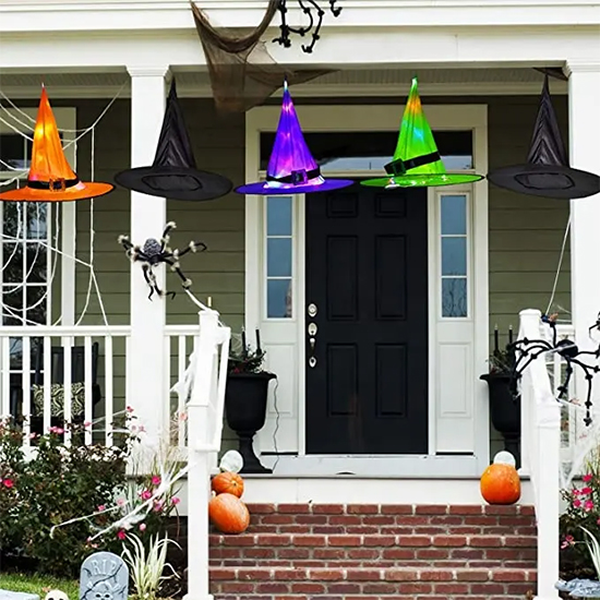 Wonderful outdoor Halloween lighting: good combination of witch hat and beautiful lights can greatly light up your Halloween, Christmas and other holiday decorations, you can hang the hat onto trees, porch or windows and when the nights come, they will seem to "float" in the air, creating a mysterious atmosphere.