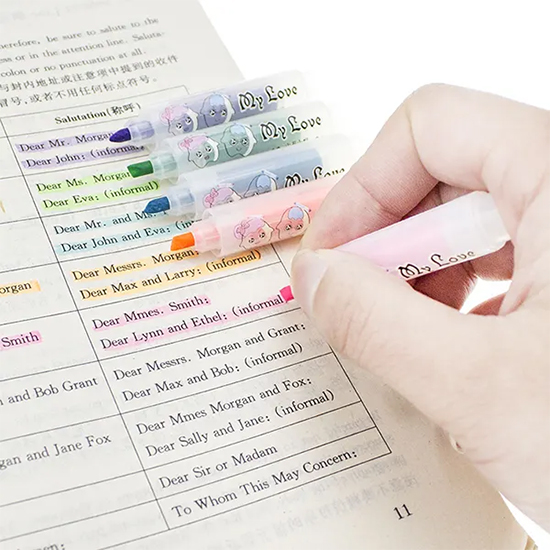 | 【Quick Drying Ink】Water Based, conforms to ASTM D-4236 certificate, non-toxic, acid free and safe to use, dries quickly. Don't bleed through paper unless very thin paper or pressing very hard when highlighting. | |