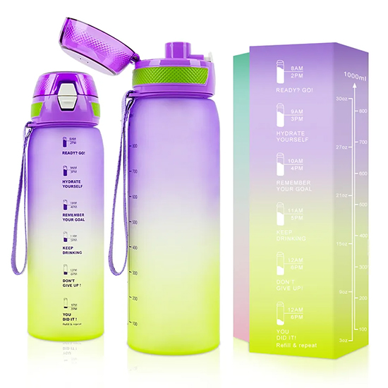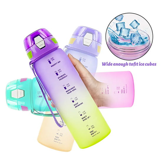 s 1L 1000ml Direct Drinking Plastic Sport BPA Free Gym Fitness Motivational Water