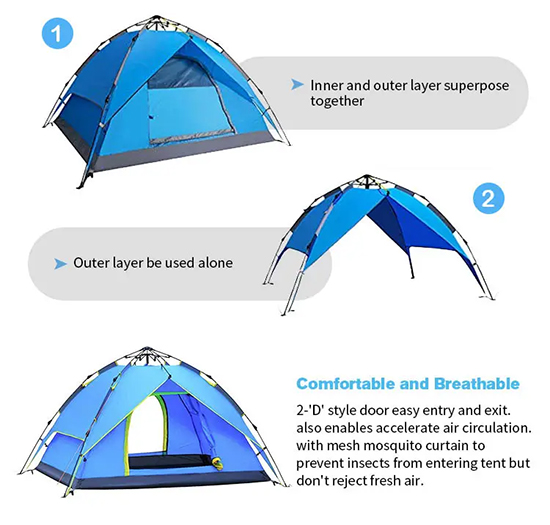 | Product Name | Automatic Instant Waterpoof Mesh Door Sun Cover Camping Tent Large Pop Up Tent |